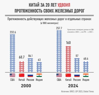Китай за 20 лет увеличил протяженность своих железных дорог более чем в 2 раза С 13 сентября 2024 года, после открытия высокоскоростной линии между Мэйчжоу и Лунчуань (провинция Гуандун), общая протяженность