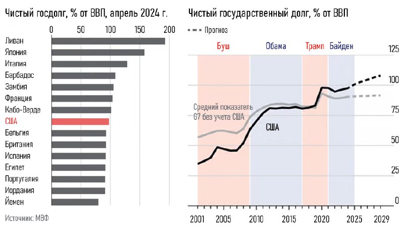 Международный валютный фонд (МВФ) прогнозирует дефицит бюджета США в 2024 году на уровне 6,5% от ВВП — самый высокий среди развитых стран. Больше только у Израиля, понятно почему.