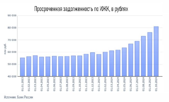 Просрочка по ипотеке в РФ выросла на 40% С начала 2024 года просроченная задолженность по ИЖК (ипотечному жилищному кредитованию) в России выросла почти на 40% — с ₽58 млрд (на 01.
