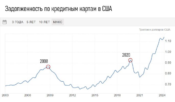 Про кредиты в день народного единства, про «братский народ» (с) Задолженность по кредитным картам в США стремительно увеличивается, значительно превышая показатели 2008 и 2020 годов.