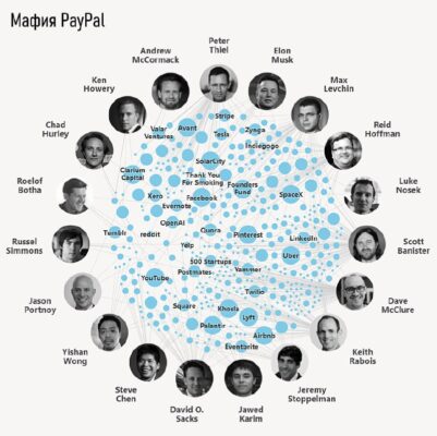 А вы знали про мафию PayPal? Как-то раз собрались умные ребята и основали компанию PayPal (~$78 млрд). В 2002 году они её удачно продали eBay (не на eBay, а самому eBay), на заработанные деньги создали