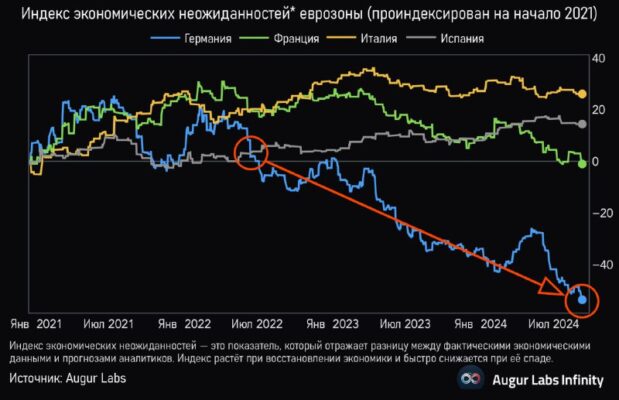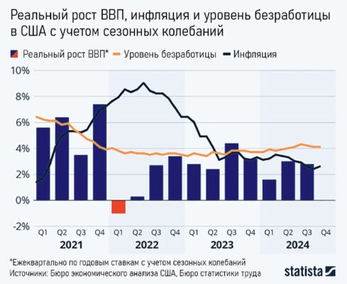 2024 год в 10 графиках Часть 2. Устойчивость США против спада в Европе Экономика США показала устойчивость: в годовом исчислении в третьем квартале ВВП вырос на 2,8% благодаря стабильным потребительским