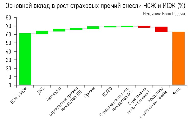 В то же время сегмент кредитного страхования жизни (которое банки предлагают при выдаче кредитов, чаще ипотечных) сократился почти на ⅔, до ₽76,3 млрд.