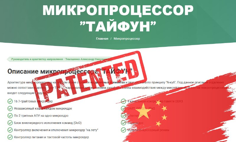 7 февраля 2025 года гендиректор компании «Тайфун» Александр Тимошенко представил на конференции в МГУ технологию троичных вычислений. И уже в марте китайская компания Huawei получила патент на почти идентичную разработку.