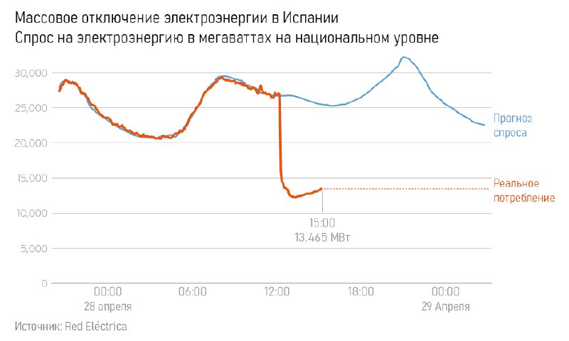 Вчера в Испании и Португалии произошло масштабное отключение электричества (в том числе связи, светофоров и т.д.) на 10+ часов. На пару часов также зацепило часть Франции, Италии, Бельгии и Андорры.