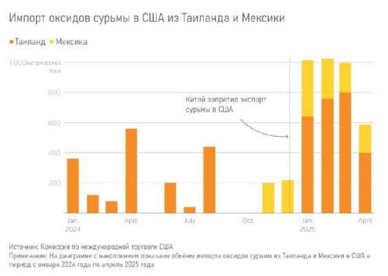 США успешно обходят запрет на экспорт из Китая критически важных минералов После того, как Китай с осени 2024 года ограничил, а с декабря 2024 года запретил экспорт критически важных минералов (сурьмы