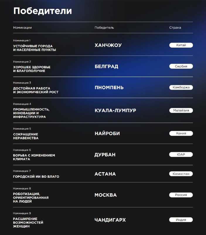 • Астана (Казахстан) — за платформу с цифровым двойником