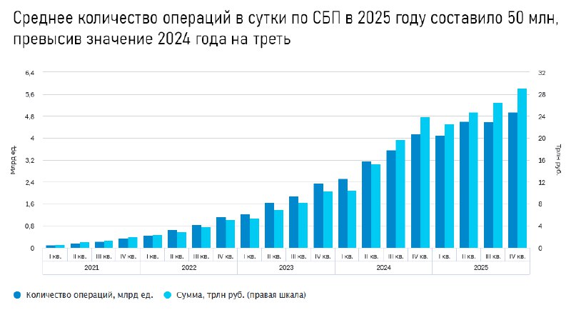 За 2025 год в России по СБП было совершено 18,3 млрд операций на сумму ₽103 трлн, что в 1,4 и 1,5 раза выше показателей 2024 года соответственно.