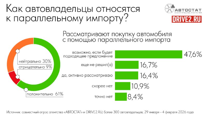 По недавнему совместному опросу Автостат и портала DRIVE2, только 9% автовладельцев воспринимают параллельный импорт негативно. Так что судьба производства на территории России остаётся пока под вопросом.