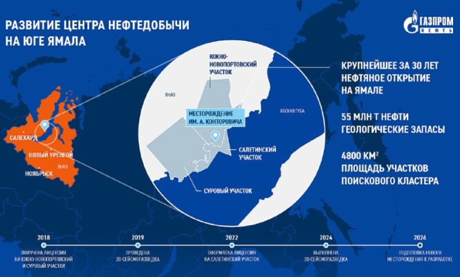 Мечты сбываются © «Газпром нефть» открыла на юге Ямала (в арктической зоне Ямало‑Ненецкого АО) крупнейшее за 30 лет нефтяное месторождение с геологическими* запасами 55 млн тонн нефти. *Геологические запасы – это «