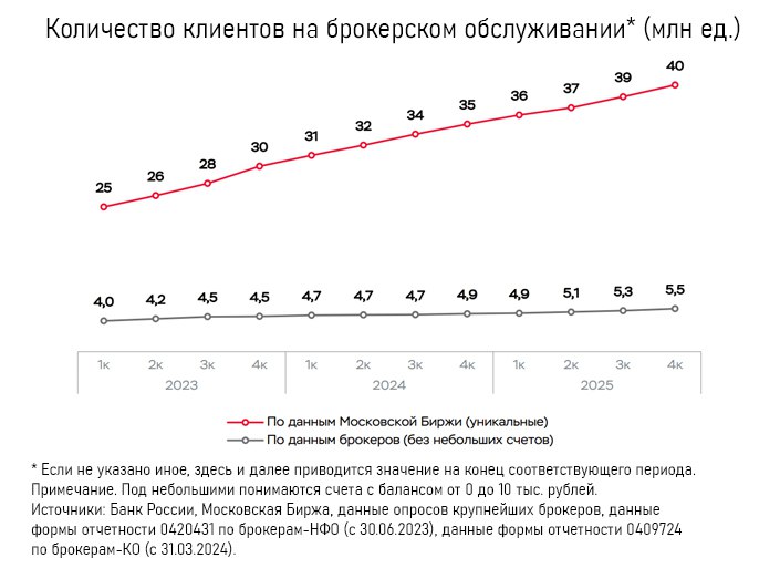 На конец 2025 года брокеры насчитали 56 млн клиентских счетов.